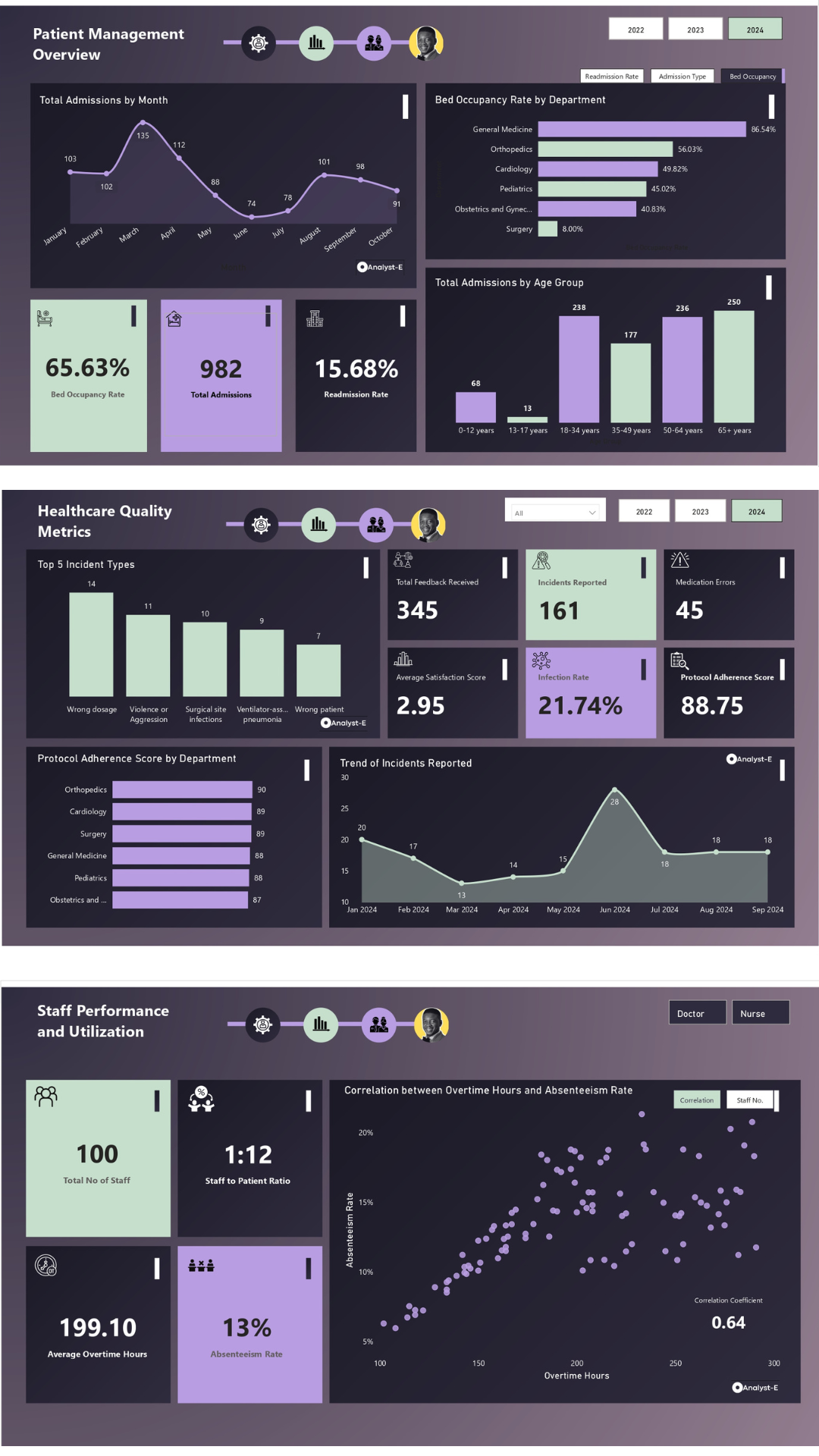 understanding of hospital operations, quality, and staff performance, with each page focusing on a specific but